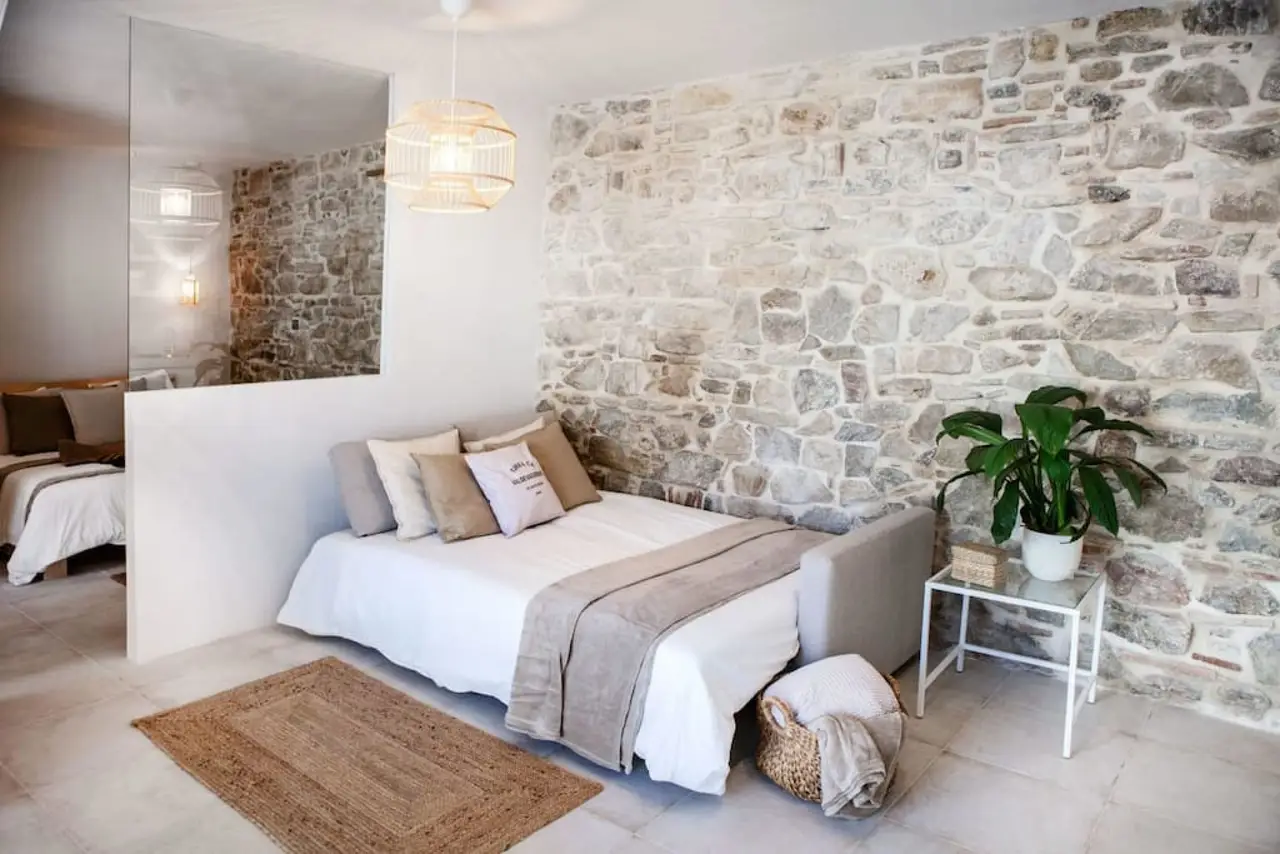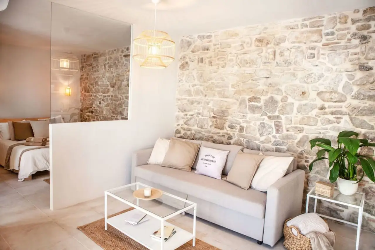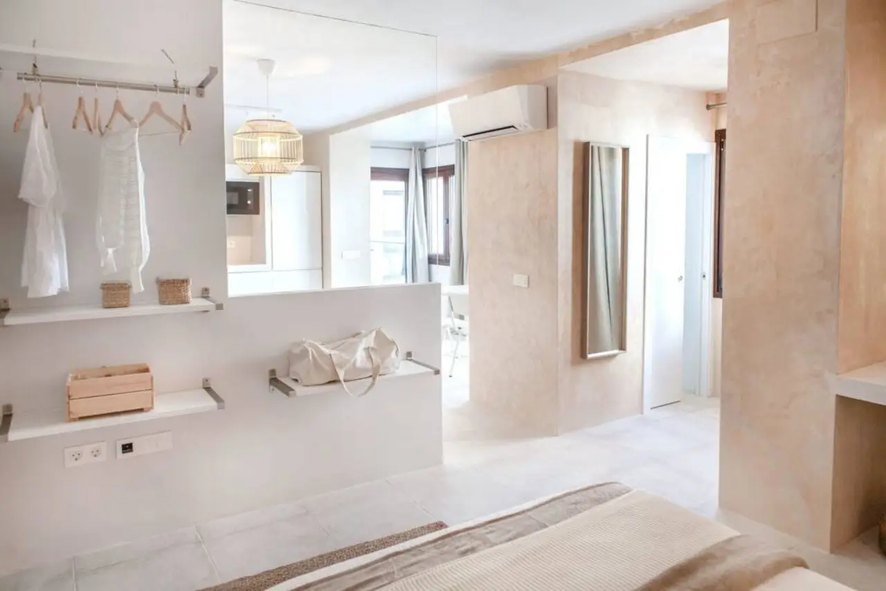 Estudio de 40 m2 en un edificio recién reformado, en el corazón del casco histórico de Tarifa, El Barrio Del Moral. Ubicado junto a la iglesia de San Mateo y la calzada, es uno de los barrios con más encanto de todo Tarifa, a apenas 100 metros de restaurantes y bares y 300m de la playa. Se trata de un barrio muy tranquilo, con muchísimo encanto y silencioso por la noche, desde el que ir a cualquier lugar caminando. Pese ser una zona peatonal, se puede acceder con el coche para descargar maletas, material de kite/wind/surf hasta la mismísima puerta para posteriormente ir a aparcar, hay un parking a 150 m del edificio justo al salir de la muralla del casco histórico. El edificio es parte de un antiguo convento totalmente rehabilitado y convertido a 6 pequeños estudios con encanto. Manteniendo todo la magia de los antiguos muros de piedra y de la construcción original, cuenta con todas las comodidades de una casa recién reformada (ascensor, aire acondicionado, bomba de calor, WIFI, televisión led de 40″, lavavajillas, horno, nevera, microhondas, extractor, menaje de cocina….) Así como servicio de toallas y sábanas limpias a vuestra llegada para que os sintáis como en casa. Aunque es un estudio, tiene capacidad para 4 personas, es cómodo y amplio, cuenta con una cama de matrimonio y sofa-cama doble de facil apertura en el salón. Es ideal para una pareja con niños o para un par de amig@s. Aunque la casa está dividida en dormitorio / zona de baño y salón cocina, se trata de una estudio de concepto abierto, es decir que todos los espacios están comunicados entre sí, siendo la única puerta la del wc, puedes ver el plano en el apartado de fotos. Los huéspedes tenéis acceso a la vivienda a través de un típico y patio andaluz modernizado con encanto exclusivo para los clientes del edificio, donde podrás echarte una buena siesta en nuestra hamaca, desayunar, o limpiar el materia de kite, así como una azotea de 110m2 para disfrutar de las vistas a la ciudad y Marruecos. El edificio es muy accesible para personas con movilidad reducida o si viajas con niños y carrito de bebes, ya que no hay escalones, cuenta con ascensor y uno de los apartamentos está adaptado para minusválidos