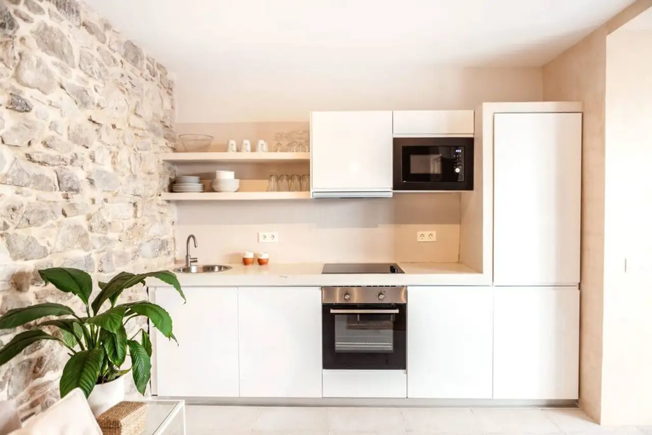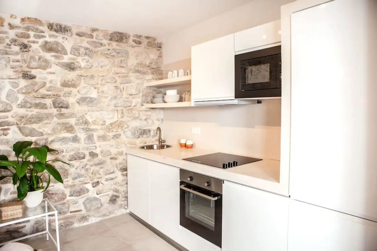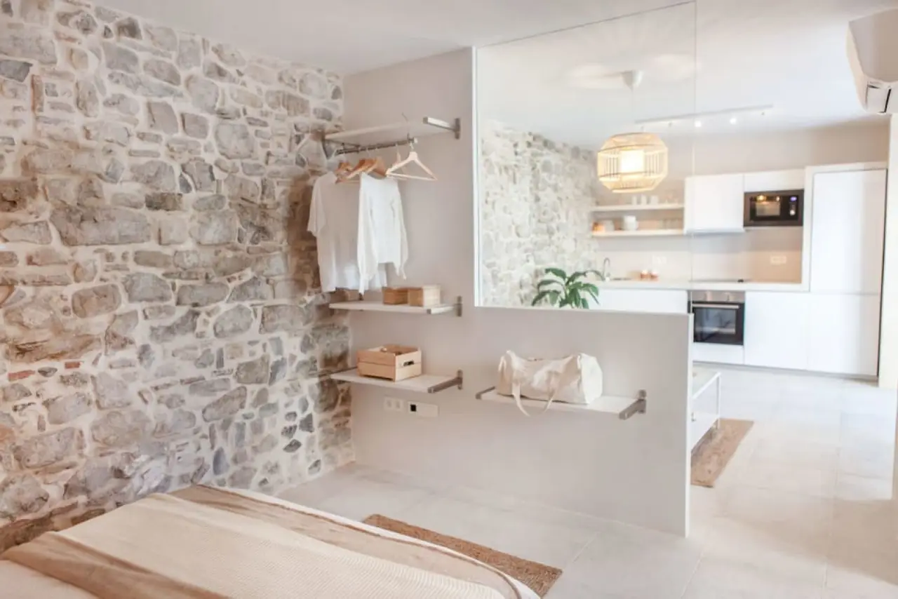 Estudio de 40 m2 en un edificio recién reformado, en el corazón del casco histórico de Tarifa, El Barrio Del Moral. Ubicado junto a la iglesia de San Mateo y la calzada, es uno de los barrios con más encanto de todo Tarifa, a apenas 100 metros de restaurantes y bares y 300m de la playa. Se trata de un barrio muy tranquilo, con muchísimo encanto y silencioso por la noche, desde el que ir a cualquier lugar caminando. Pese ser una zona peatonal, se puede acceder con el coche para descargar maletas, material de kite/wind/surf hasta la mismísima puerta para posteriormente ir a aparcar, hay un parking a 150 m del edificio justo al salir de la muralla del casco histórico. El edificio es parte de un antiguo convento totalmente rehabilitado y convertido a 6 pequeños estudios con encanto. Manteniendo todo la magia de los antiguos muros de piedra y de la construcción original, cuenta con todas las comodidades de una casa recién reformada (ascensor, aire acondicionado, bomba de calor, WIFI, televisión led de 40″, lavavajillas, horno, nevera, microhondas, extractor, menaje de cocina….) Así como servicio de toallas y sábanas limpias a vuestra llegada para que os sintáis como en casa. Aunque es un estudio, tiene capacidad para 4 personas, es cómodo y amplio, cuenta con una cama de matrimonio y sofa-cama doble de facil apertura en el salón. Es ideal para una pareja con niños o para un par de amig@s. Aunque la casa está dividida en dormitorio / zona de baño y salón cocina, se trata de una estudio de concepto abierto, es decir que todos los espacios están comunicados entre sí, siendo la única puerta la del wc, puedes ver el plano en el apartado de fotos. Los huéspedes tenéis acceso a la vivienda a través de un típico y patio andaluz modernizado con encanto exclusivo para los clientes del edificio, donde podrás echarte una buena siesta en nuestra hamaca, desayunar, o limpiar el materia de kite, así como una azotea de 110m2 para disfrutar de las vistas a la ciudad y Marruecos. El edificio es muy accesible para personas con movilidad reducida o si viajas con niños y carrito de bebes, ya que no hay escalones, cuenta con ascensor y uno de los apartamentos está adaptado para minusválidos