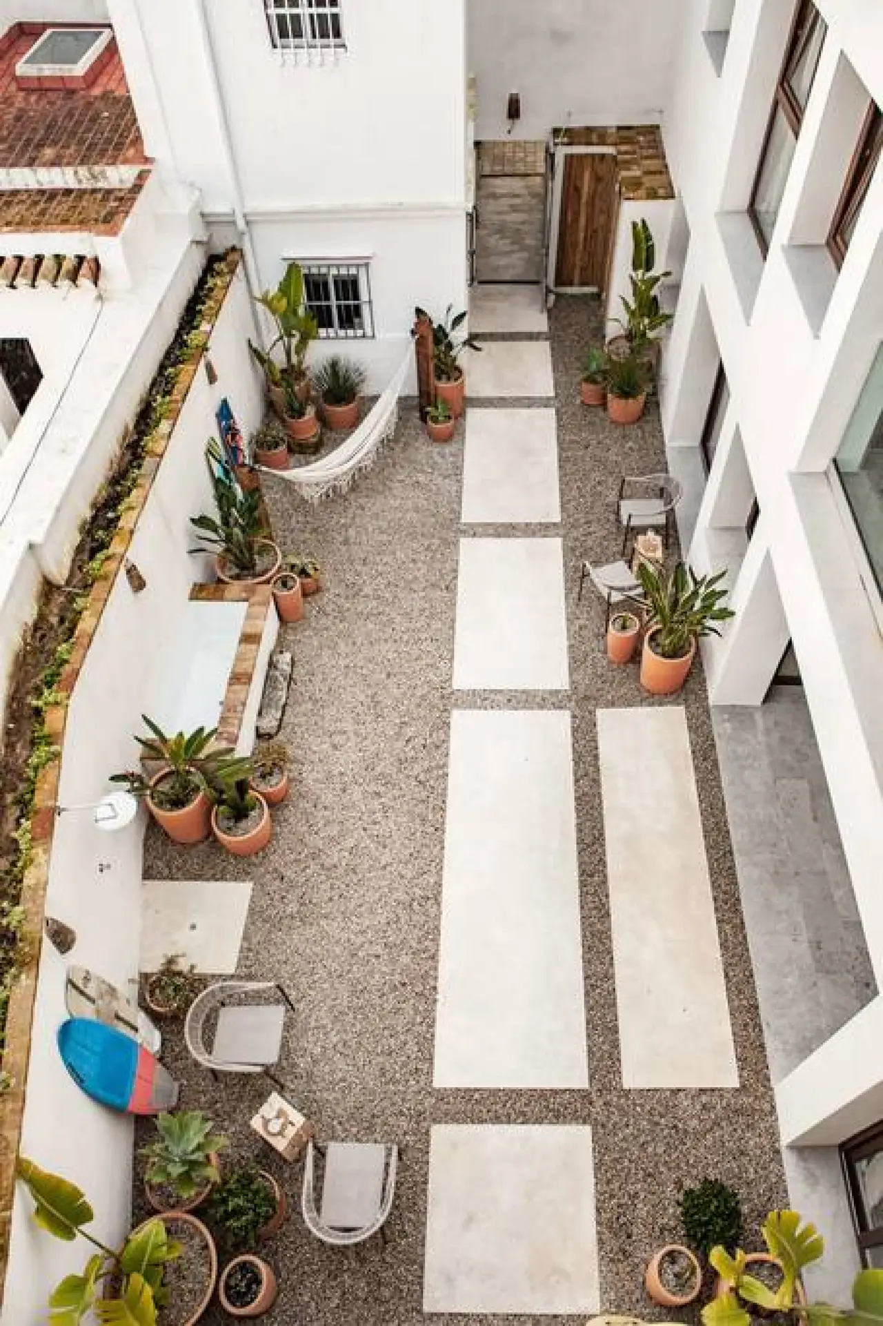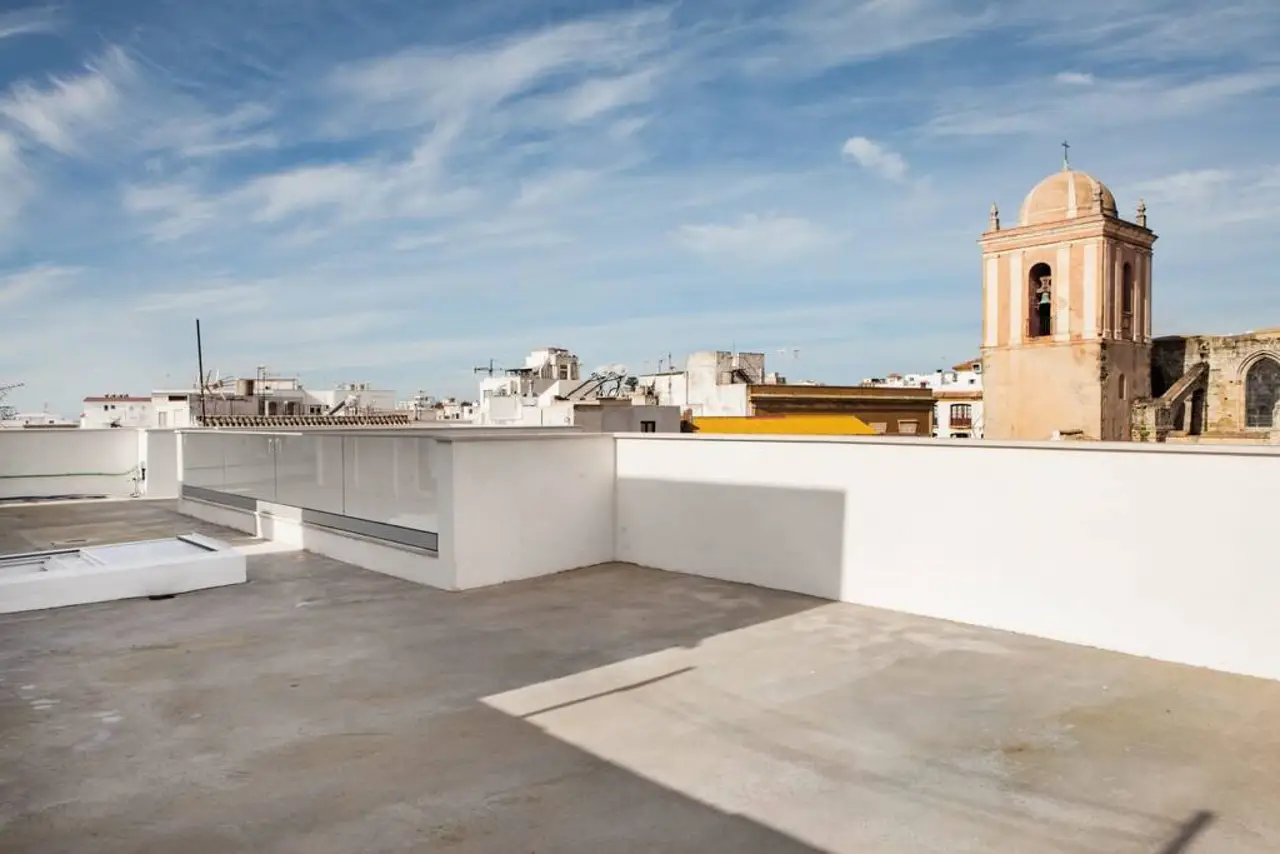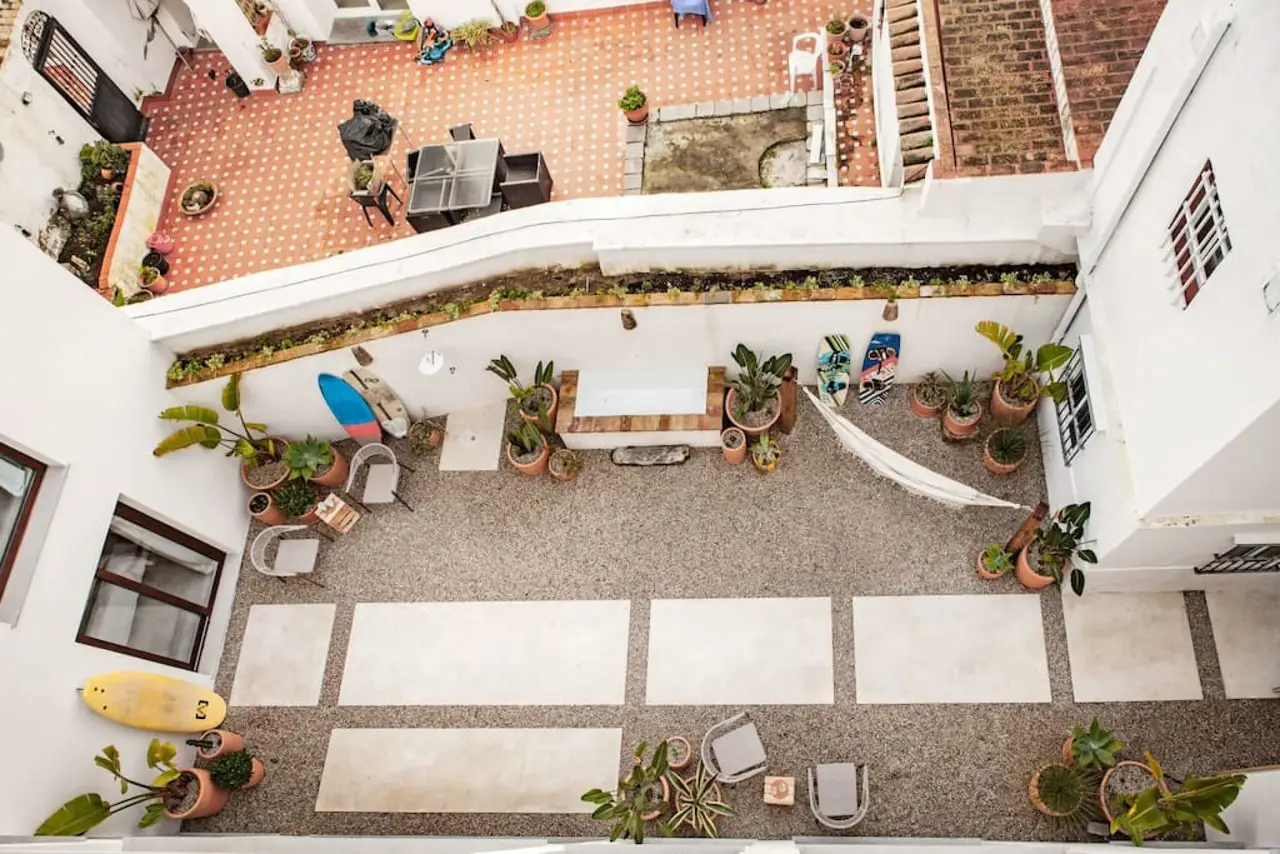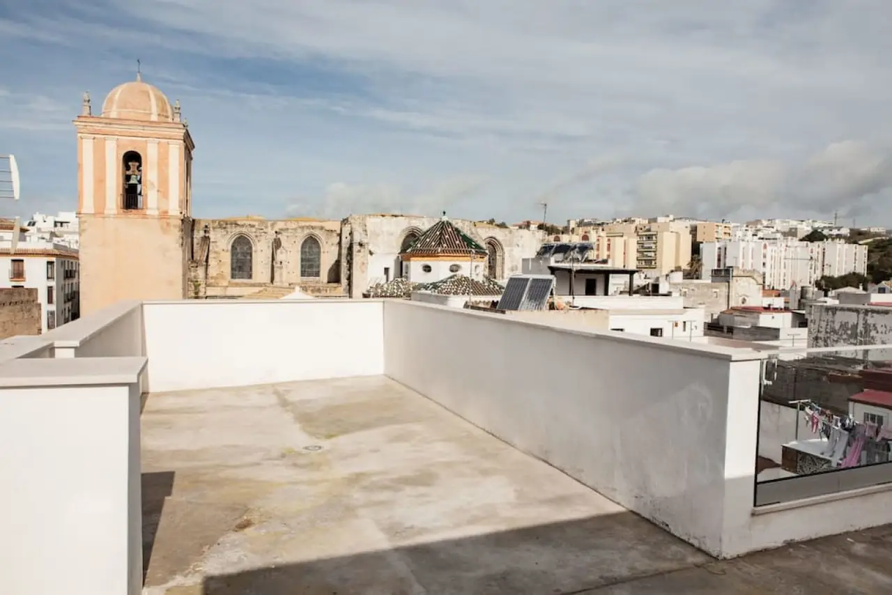 Los huéspedes tenéis acceso a la vivienda a través de un típico y patio andaluz modernizado con encanto exclusivo para los clientes del edificio, donde podrás echarte una buena siesta en nuestra hamaca, desayunar, o limpiar el materia de kite, así como una azotea de 110m2 para disfrutar de las vistas a la ciudad y Marruecos. El edificio es muy accesible para personas con movilidad reducida o si viajas con niños y carrito de bebes, ya que no hay escalones, cuenta con ascensor y uno de los apartamentos está adaptado para minusválidos.