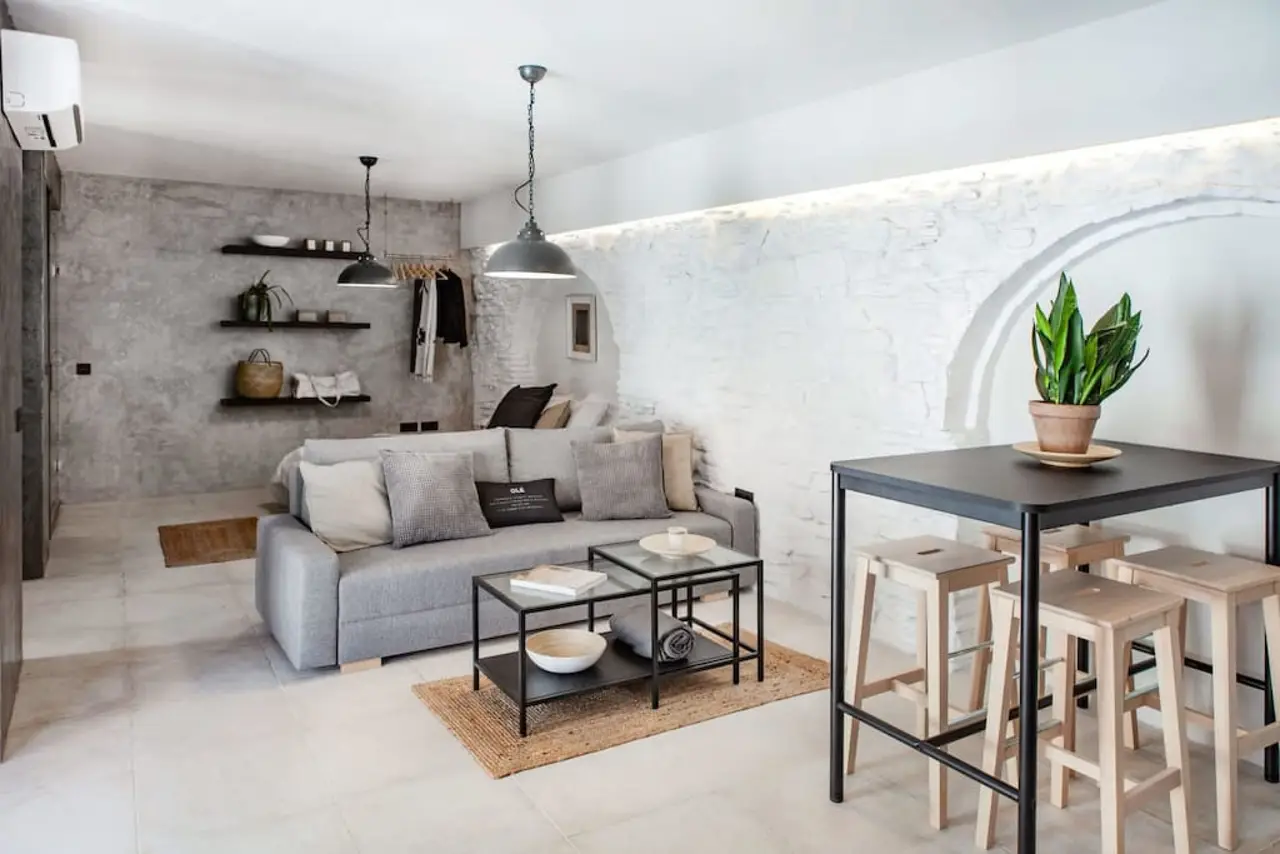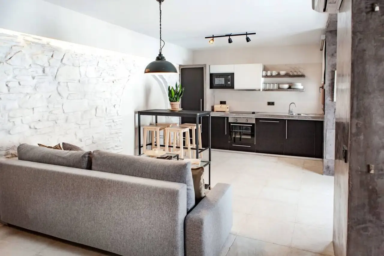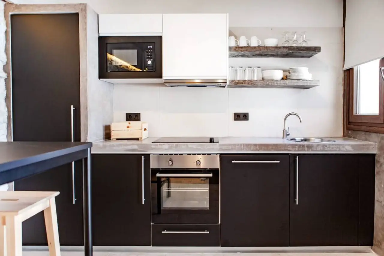 El edificio es parte de un antiguo convento totalmente rehabilitado y convertido a 6 pequeños estudios con encanto. Manteniendo todo la magia de los antiguos muros de piedra y de la construcción original, cuenta con todas las comodidades de una casa recién reformada (ascensor, aire acondicionado, bomba de calor, WIFI, televisión led de 40″, lavavajillas, horno, nevera, microhondas, extractor, menaje de cocina….) Así como servicio de toallas y sábanas limpias a vuestra llegada para que os sintáis como en casa. Aunque es un estudio, tiene capacidad para 4 personas, es cómodo y amplio, cuenta con una cama de matrimonio y sofa-cama doble de facil apertura en el salón. Es ideal para una pareja con niños o para un par de amig@s. Aunque la casa está dividida en dormitorio / zona de baño y salón cocina, se trata de una estudio de concepto abierto, es decir que todos los espacios están comunicados entre sí, siendo la única puerta la del wc, puedes ver el plano en el apartado de fotos.